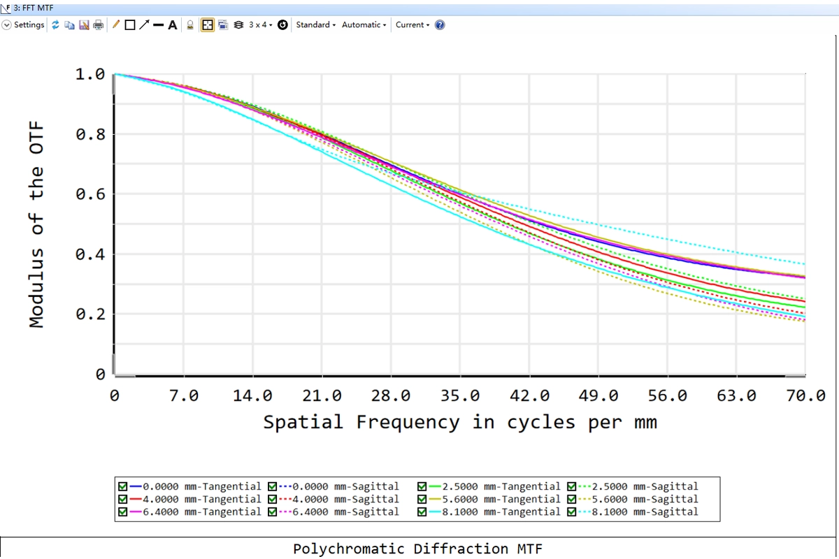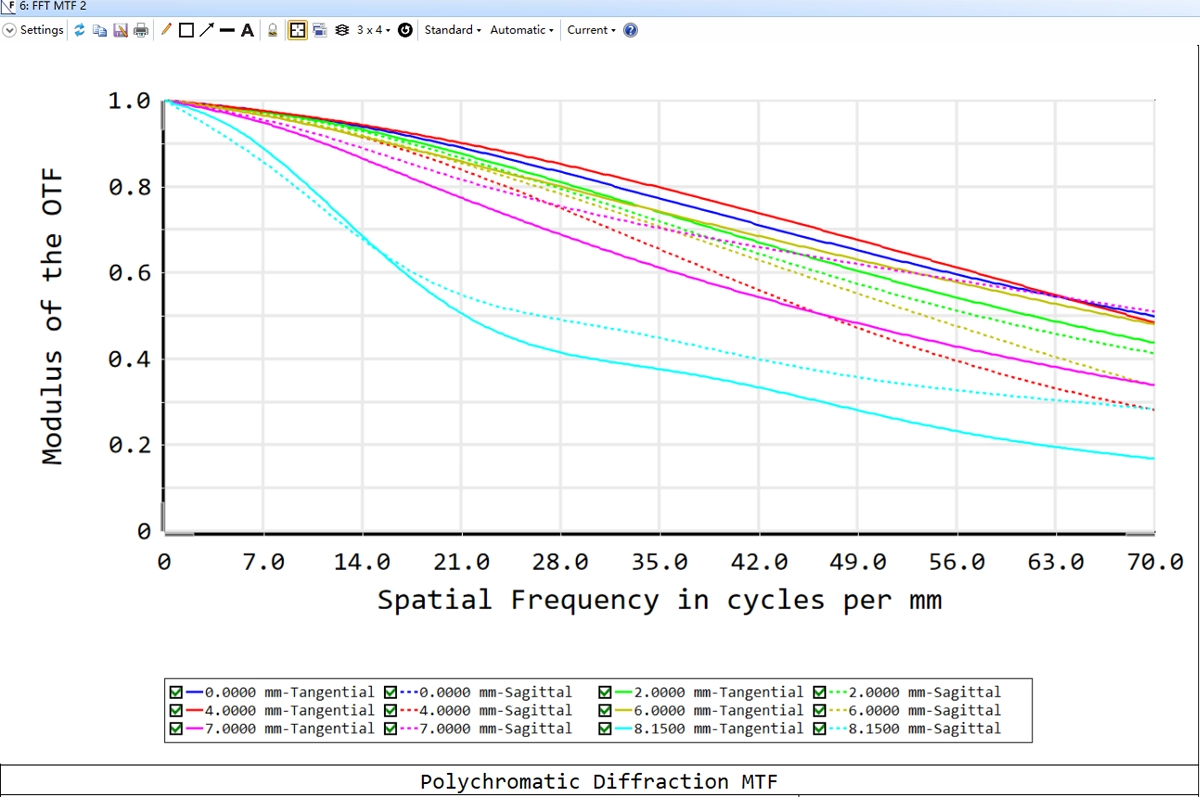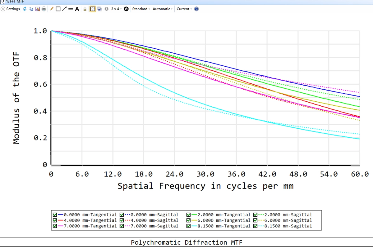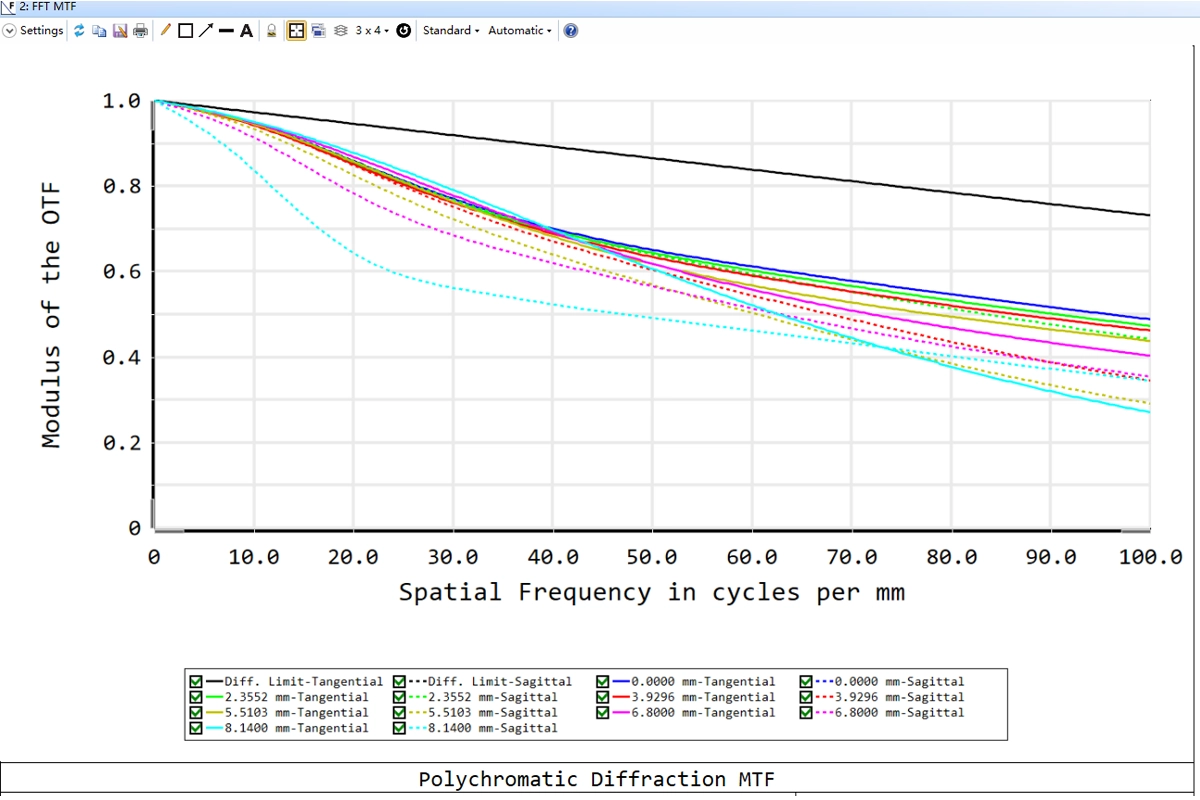 | Optical Distortion | ≤-4.8% | ≤-3.6% | ≤-1.8% | ≤-0.6% | ≤-0.96% | ≤-0.52% | ≤-0.6% | ≤0.3% |