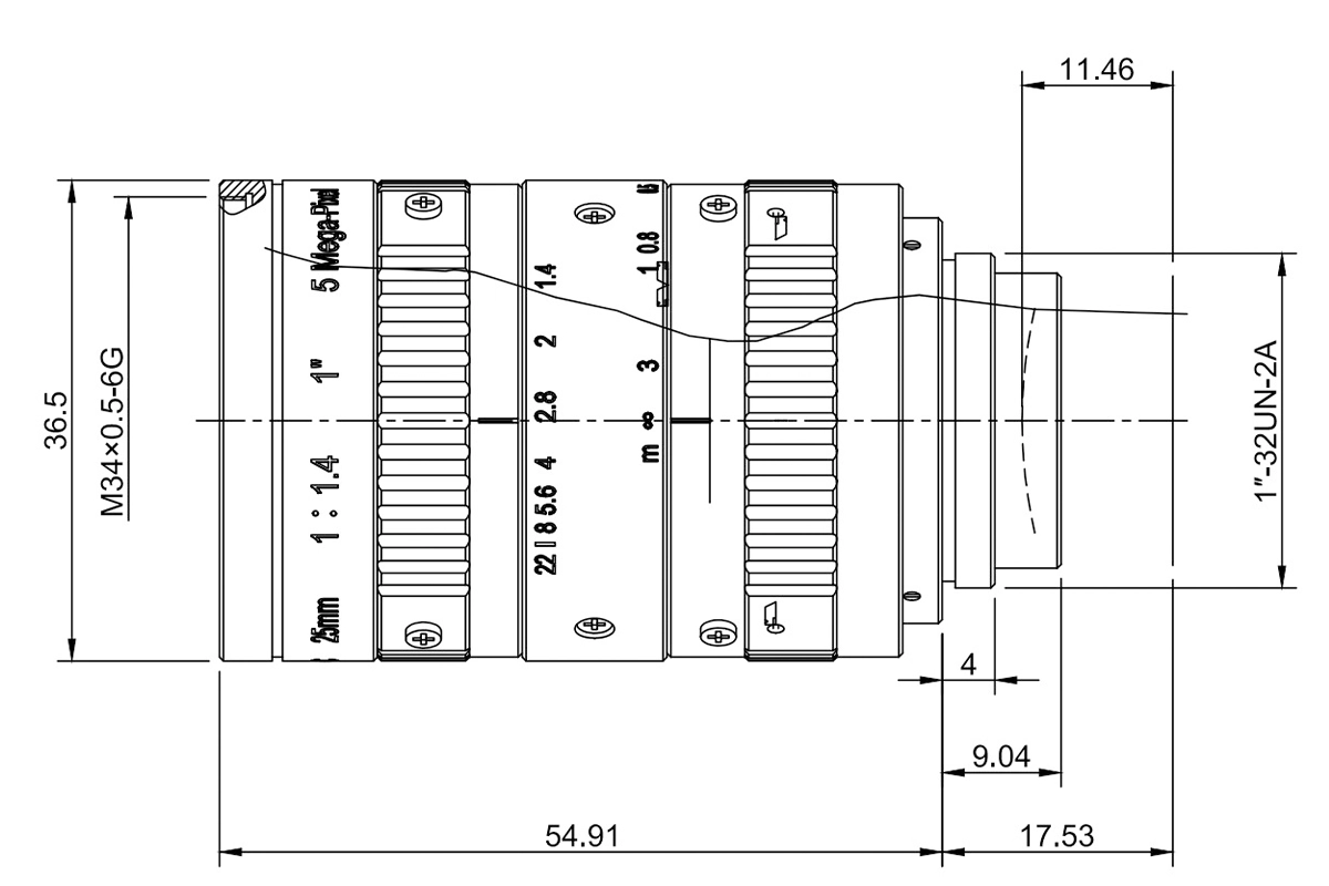 | SWIR2514C | 1″ | 36° | 28.7° | 21.8° | 0.3 – ∞m |