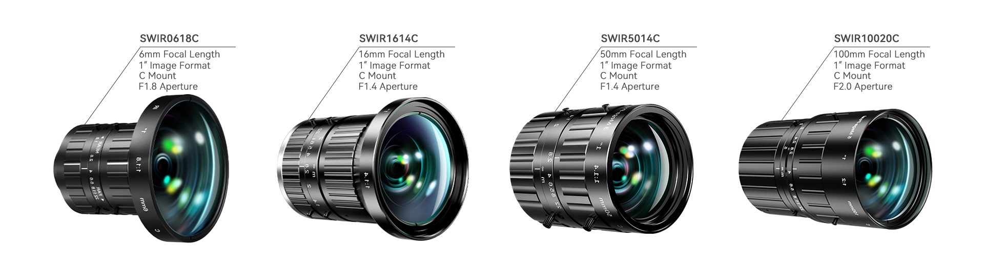 | SWIR1214C | 1″ | 66.5° | 55.2° | 42.6° | 0.1 – ∞m |