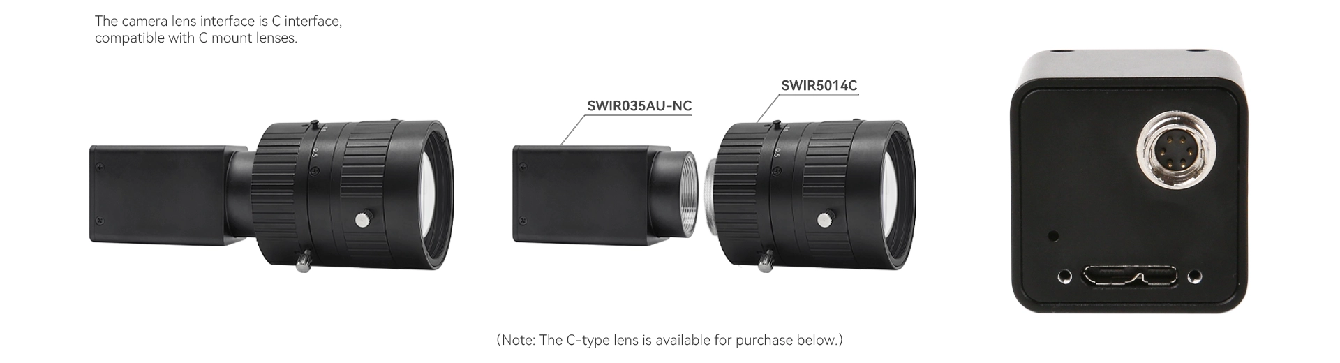 The SWIRNC series USB3.0 interface uncooled cameras equipped with Sony IMX990/991/992/993 InGaAs sensors spanning an impressive 400-1700nm VIS-SWIR spectrum. Featuring a lightweight design, these cameras offer resolutions from 0.33 MP and 5 MP and pixel sizes of 5 μm and 3.45 μm (Model-Dependent). These SWIR camera provide low power consumption and a high dynamic range, ensuring stable and reliable short-wave infrared imaging.