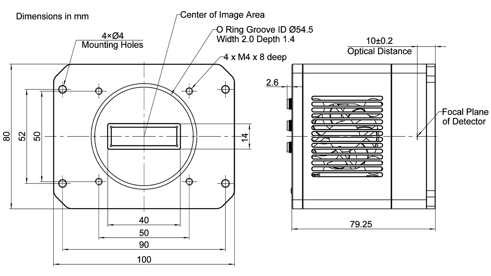 High frame rate: Parallel readout architecture supports 100 fps or higher.