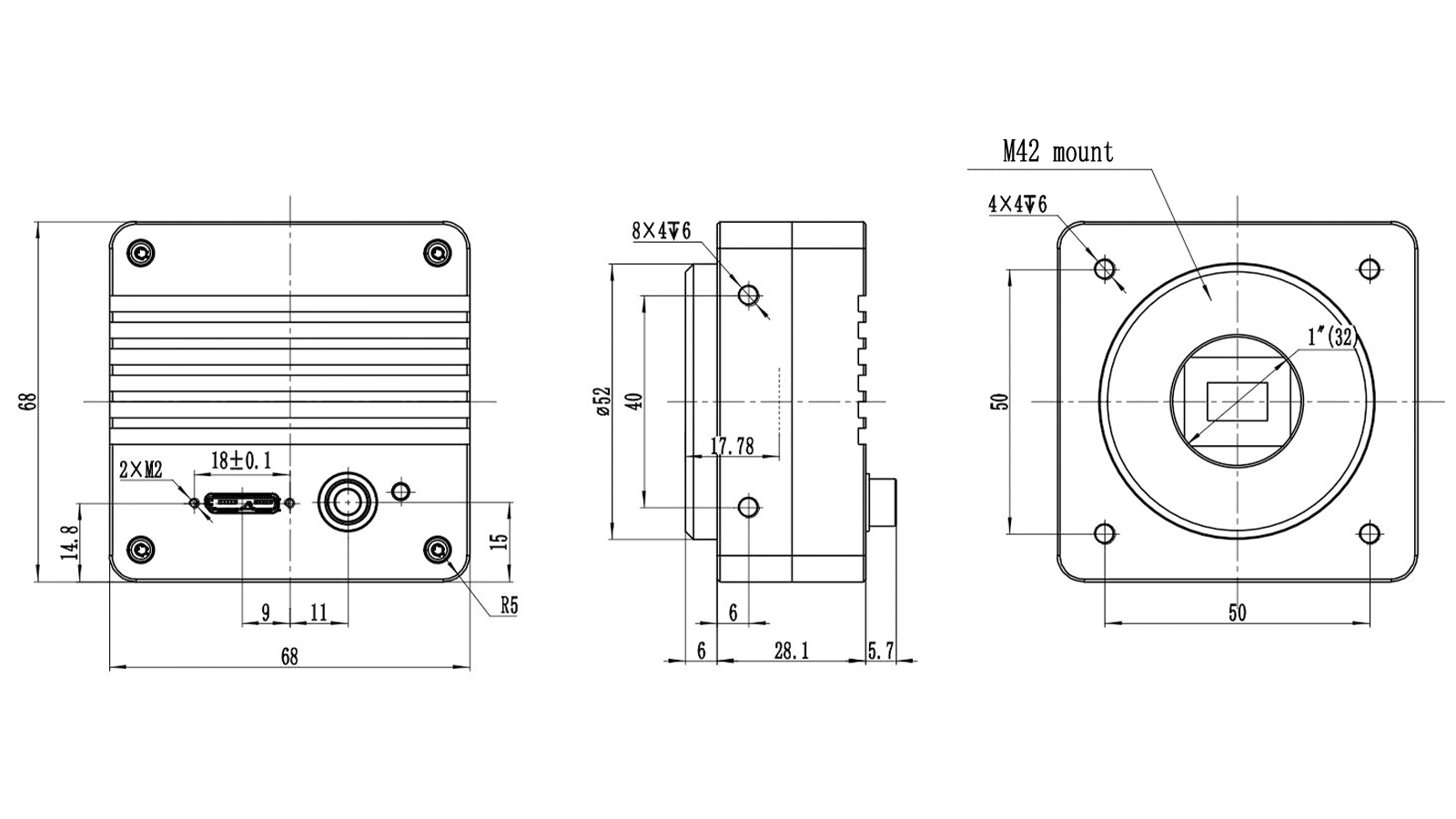 | Lens mount | C-mount | M42 Interface | |